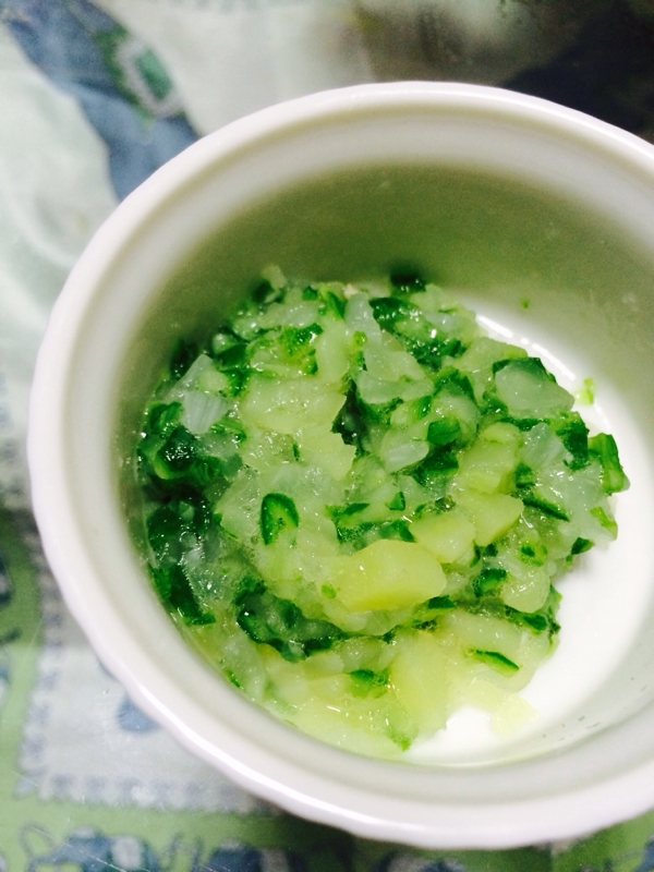 離乳食 中期 じゃが芋と玉ねぎのオクラ和え レシピ 作り方 By Eerrii5039 楽天レシピ